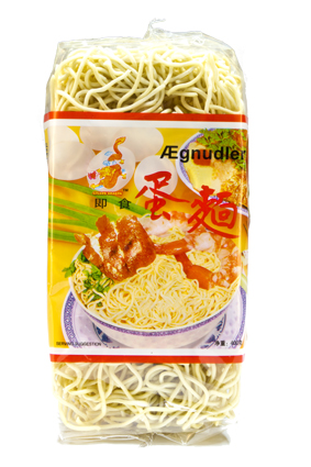 GOLDEN DRAGON Æg Nudler Varenummer: 1615 Nettoindhold: 400 g EAN: 7300009433001 Antal pr. kolli: 30 Pose kollistk Næringsindhold pr. 100g Energi 1436kJ / 339kcal Fedt 1,4g – Heraf mættet fedt 0,3g Kulhydrat 70,0g – Heraf sukkerarter 0,2g Protein 14,0g Salt 1,9g Ingredienser HVEDEMEL(87%), vand, ÆG(4%), salt. Kogetid ca. 4 min.