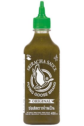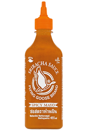FLYING GOOSE Sriracha Chili Majo, Spicy Varenummer: 1639 Nettoindhold: 455 ml EAN: 8853662060170 Antal pr. kolli: 12 Flaske kollistk Næringsindhold pr. 100g Energi 984kJ / 236kcal Fedt 16,0g – Heraf mættet fedt 2,5g Kulhydrat 22,0g – Heraf sukkerarter 15,0g Protein 0,5g Salt 2,9g Ingredienser Vand, chili, SOJAOLIE, sukker, destilleret eddike, salt, stabilisator: E415, hvidløg, modificeret majsstivelse, modificeret tapiokastivelse, SENNEPSFRØ, surhedsregulerende middel: eddikesyre, citronsyre, smagsforstærker: E621, konserveringsmiddel: E202, antioxidant: E319. Yderligere allergene info: Kan indeholde spor af: jordnødder, fisk, sesam, hvede. Har en ingefær, sursød smag. Passer bedst til dip, spaghetti, pizza eller til en ret som skal have en stærk smag.