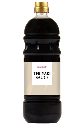 SunBEST Teriyaki Sauce Varenummer: 91726 Nettoindhold: 1000 ml EAN: 5720745355863 Antal pr. kolli: 12 Flaske kollistk Næringsindhold pr. 100g Energi 634kJ / 150kcal Fedt 0,0g – Heraf mættet fedt 0,0g Kulhydrat 28,7g – Heraf sukkerarter 23,1g Protein 3,7g Salt 5,6g Ingredienser SOJAsauce (vand, SOJABØNNER, HVEDE, salt, alkohol (ethanol)), vand, sukker, mirin, majsmel, alkohol. Bruges til forårsruller eller asiatiske retter.