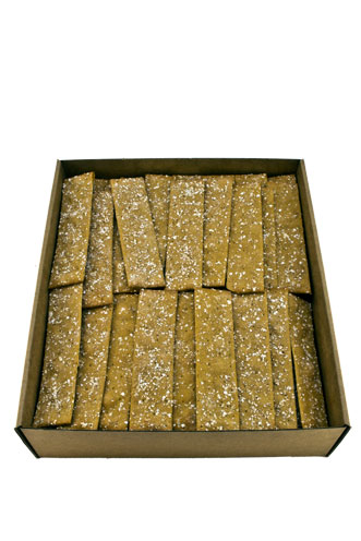 LEKSANDS Knækbrøds-Sticks Økologisk Varenummer: 9185 Nettoindhold: 1300 g EAN: 7312080850011 Antal pr. kolli: 1 Æske kollistk Næringsindhold pr. 100g Energi 1500kJ / 360kcal Fedt 23,0g – Heraf mættet fedt 0,6g Kulhydrat 69,0g – Heraf sukkerarter 7,4g Protein 10,0g Salt 2,0g Ingredienser HVEDEMEL*, boghvede flager*, sukker*, vand, surdej*(vand, RUG), HVEDEKILD*, salt, gær, havsalt. *)Fra certificeret økologisk landbrug. .