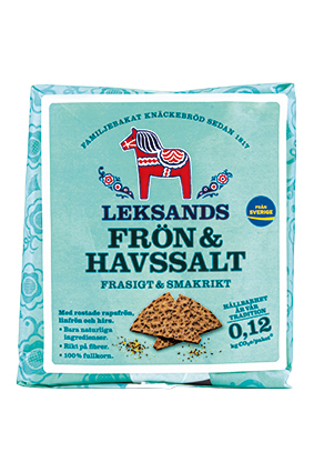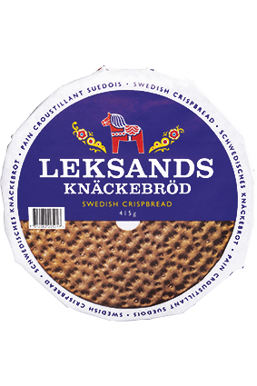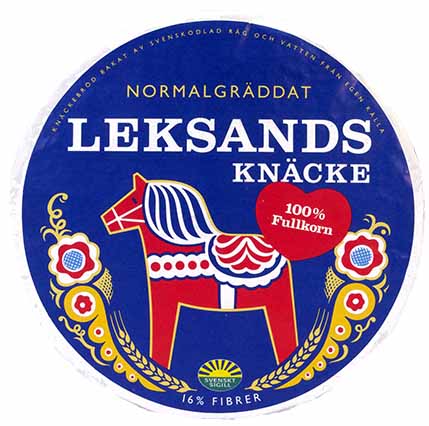 LEKSANDS BLÅ Fuldkornsknækbrød, Rund Varenummer: 8311 Nettoindhold: 830 g EAN: 7312082001015 Antal pr. kolli: 12 Pakke kollistk Næringsindhold pr. 100g Energi 1400kJ / 350kcal Fedt 1,6g – Heraf mættet fedt 0,3g Kulhydrat 60,0g – Heraf sukkerarter 0,5g Protein 8,9g Salt 0,5g Ingredienser FuldkornsRUGmel, vand, gær, salt. LEKSANDS BLÅ Knækbrød med fuldkorn spises til såvel mellem- som hovedmåltider.