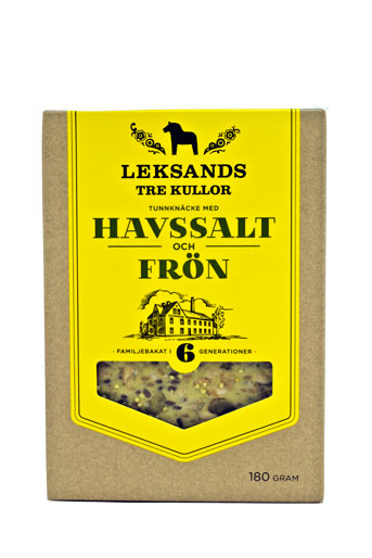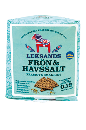 LEKSANDS Fuldkornsknækbrød, Frø & Havsalt Varenummer: 8321 Nettoindhold: 200 g EAN: 7312080004278 Antal pr. kolli: 12 Pakke kollistk Næringsindhold pr. 100g Energi 1500kJ / 360kcal Fedt 3,9g – Heraf mættet fedt 0,6g Kulhydrat 63,0g – Heraf sukkerarter 0,4g Protein 10,0g Salt 1,2g Ingredienser FuldkornsRUGmel, vand, brune linfrø 4%, hirsefrø 4%, ristede rapsfrø 4%, havsalt 1,2%, gær Yderligere allergene info: Kan indeholde spor af soja, sennep. LEKSANDS Knækbrød med fuldkorn spises såvel til mellem- som hovedmåltider.