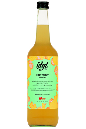 IDYL Cocktail m/Jordbær og Rabarbar Varenummer: 85556 Nettoindhold: 700 ml EAN: 5745000142163 Antal pr. kolli: 12 Flaske kollistk Næringsindhold pr. 100g Energi 0kJ / 0kcal Fedt 0,0g – Heraf mættet fedt 0,0g Kulhydrat 0,0g – Heraf sukkerarter 0,0g Protein 0,0g Salt 0,0g Ingredienser Rabarbar, jordbær, vand, sukker, limesaft, alkohol, æblesirup. Færdigblandet cocktail.