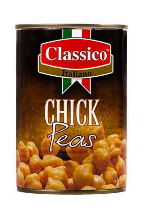 CLASSICO Kik-Ærter Varenummer: 3314 Nettoindhold: 400 g EAN: 8029363203110 Antal pr. kolli: 12 Dåse kollistk Næringsindhold pr. 100g Energi 322kJ / 77kcal Fedt 1,7g – Heraf mættet fedt 0,0g Kulhydrat 11,7g – Heraf sukkerarter 0,0g Protein 4,3g Salt 0,0g Ingredienser Kik-ærter, vand, salt. Som hovedingrediens i humus, i salater, supper, vegetarretter m.m.