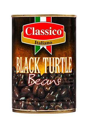 CLASSICO Sorte Bønner Varenummer: 3309 Nettoindhold: 400 g EAN: 8029363213119 Antal pr. kolli: 12 Dåse kollistk Næringsindhold pr. 100g Energi 294kJ / 70kcal Fedt 1,0g – Heraf mættet fedt 0,0g Kulhydrat 11,0g – Heraf sukkerarter 0,0g Protein 5,0g Salt 0,1g Ingredienser Sorte bønner, vand, salt. Velegnet som tilbehør til kødretter, Salater, Supper, Chili con Carne.