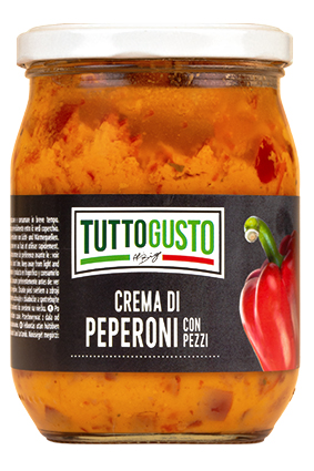 TUTTO GUSTO Peberfrugt Creme Varenummer: 9565 Nettoindhold: 500 g EAN: 8005528325675 Antal pr. kolli: 6 Glas kollistk Næringsindhold pr. 100g Energi 827kJ / 200kcal Fedt 17,5g – Heraf mættet fedt 2,1g Kulhydrat 7,8g – Heraf sukkerarter 6,1g Protein 1,3g Salt 1,3g Ingredienser Røde peberfrugter (70%), solsikkeolie, løg, majsstivelse, salt, eddike, sukker, citronkoncentrat, basilikum, gærekstrakt, hvidløg, krydderier, fortykningsmiddel: xantangummi, guargummi. Oprindelse af peberfragter: EU og ikke-EU. Yderligere allergene info: Kan indeholde spor af: soaj, nødder og selleri. Som til behør til kød, i sandwich, blandes med pasta til pastasalat. Super i HUG neutrale tærteskaller med et drys af reven parmesan