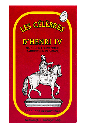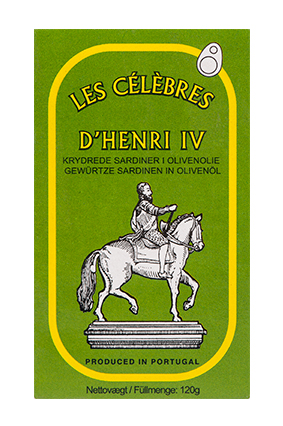 D’HENRI IV Sardiner i Olivenolie uden skind og ben Varenummer: 7183 Nettoindhold: 120 g EAN: 5606677501083 Antal pr. kolli: 12 Dåse kollistk Næringsindhold pr. 100g Energi 823kJ / 197kcal Fedt 11,0g – Heraf mættet fedt 1,5g Kulhydrat 0,5g – Heraf sukkerarter 0,5g Protein 24,0g Salt 0,9g Ingredienser SARDINER* (70,8%), olivenolie (28,2%) and salt Fangstområde FAO 27 + 34 Fanget med snurpenot. Inderholder 2-5 sardiner