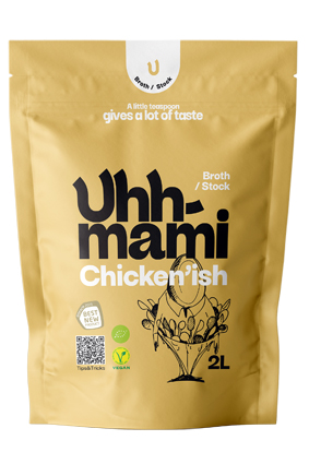 Blød og delikat smag fra gården. Et rent, økologisk og plantebaseret alternativ til traditionel hønsebouillon, som kan bruges i saucer og supper. Brug Chicken’ish i fyld for en forhøjet smag eller i wok og ramen. Det fungerer godt som krydderi til grøntsager, hvor der ønskes mere smag og fylde.