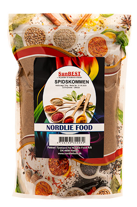 SunBEST Spidskommen, Stødt Varenummer: 9759 Nettoindhold: 750 g EAN: 5720745354989 Antal pr. kolli: 6 Pose kollistk Næringsindhold pr. 100g Energi 1879kJ / 455kcal Fedt 22,3g – Heraf mættet fedt 0,0g Kulhydrat 44,2g – Heraf sukkerarter 0,0g Protein 17,8g Salt 0,0g Ingredienser Stødt Spidskommen. Til al slags madlavning.