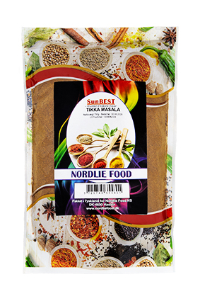 SunBEST Tikka Masala Varenummer: 9735 Nettoindhold: 750 g EAN: 5720745355801 Antal pr. kolli: 6 Pose kollistk Næringsindhold pr. 100g Energi 1348kJ / 322kcal Fedt 12,2g – Heraf mættet fedt 0,0g Kulhydrat 38,4g – Heraf sukkerarter 25,8g Protein 14,1g Salt 9,9g Ingredienser Koriander, spidskommen, sort peber, havsalt, ingefær, kardemomme, ceylon kanel, gurkemeje, chili, paprika, muskatnød, allehånde, nelliker. Yderligere allergene info: Kan indeholde spor af: selleri, sennep og sesam. Som krydderi i madlavning.