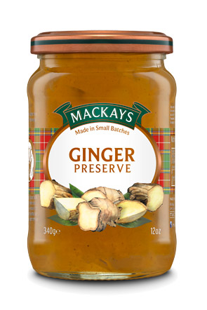MACKAYS Ingefær Marmelade Varenummer: 3739 Nettoindhold: 340 g EAN: 637793001039 Antal pr. kolli: 6 Glas kollistk Næringsindhold pr. 100g Energi 1111kJ / 261kcal Fedt 0,0g – Heraf mættet fedt 0,0g Kulhydrat 64,8g – Heraf sukkerarter 64,8g Protein 0,2g Salt 0,0g Ingredienser Sukker, ingefær (25%), geleringsmiddel: frugtpektin E440, koncentreret citronsaft, krydderiblanding (0,3%). Fremstillet af 35 frugt pr. 100g. Samlet sukkermængde 65g pr. 100g. Benyttes oftest som pålæg på brød. Kan også bruges som sødemiddel eller fyld i kager, eller som pynt på yoghurt.