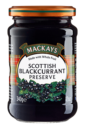 MACKAYS Skotsk Solbær Marmelade Varenummer: 3733 Nettoindhold: 340 g EAN: 637793000971 Antal pr. kolli: 6 Glas kollistk Næringsindhold pr. 100g Energi 1145kJ / 270kcal Fedt 0,0g – Heraf mættet fedt 0,0g Kulhydrat 67,0g – Heraf sukkerarter 66,7g Protein 0,4g Salt 0,0g Ingredienser Sukker, Solbær (25%). Geleringsmiddel: pektin, surhedsregulerende middel: Citronsyre. Fremstillet af 35 frugt pr. 100g. Samlet sukkermængde 65g pr. 100g. Benyttes oftest som pålæg på brød. Kan også bruges som sødemiddel eller fyld i kager, eller som pynt på yoghurt.