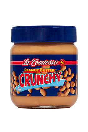 L.C. Jordnødde-Smør Crunchy Varenummer: 3318 Nettoindhold: 350 g EAN: 4008314177766 Antal pr. kolli: 12 Glas kollistk Næringsindhold pr. 100g Energi 2624kJ / 632kcal Fedt 50,0g – Heraf mættet fedt 12,0g Kulhydrat 19,0g – Heraf sukkerarter 14,0g Protein 25,0g Salt 1,6g Ingredienser Ristede JORDNØDDER (92%), sukker, hele hydrogeneret SOJAbønneolie, salt, emulgator E471. Yderligere allergene info: Kan indeholde spor af: andre nødder Som smørepålæg, til bagning af peanut butter cookies, i dressinger og saucer samt i kyllingeretter.