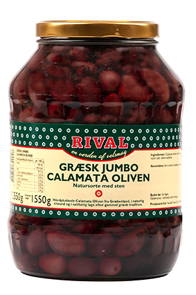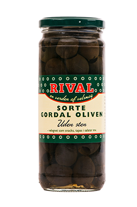 RIVAL Sorte GORDAL Oliven u/sten Varenummer: 1149 Nettoindhold: 440 g EAN: 5720745353081 Antal pr. kolli: 6 Glas kollistk Næringsindhold pr. 100g Energi 326kJ / 79kcal Fedt 8,3g – Heraf mættet fedt 1,5g Kulhydrat 0,0g – Heraf sukkerarter 0,0g Protein 1,0g Salt 2,0g Ingredienser 99% Sorte stenfri Gordal oliven, vand, salt, ferrogluconat (E579). Maskinelt udstenet, enkelte oliven kan derfor indeholde sten. Som garniture, snack, antipasti, i salater eller tapanade.
