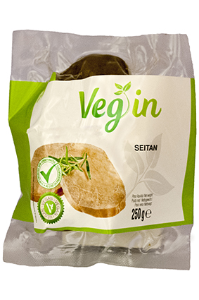 VEGIN Seitan, Vegansk Varenummer: 12077 Nettoindhold: 250 g EAN: 5600752728235 Antal pr. kolli: 6 Pakke kollistk Næringsindhold pr. 100g Energi 664kJ / 157kcal Fedt 2,2g – Heraf mættet fedt 0,6g Kulhydrat 6,1g – Heraf sukkerarter 1,1g Protein 27,0g Salt 0,2g Ingredienser Vand, HVEDE protein, HVEDEmel og SOJAsovs (vand, SOJAbønner, salt, roeeddike). "[HVEDE protein EU]". Til både varme og kolde retter. Kan anvendes som mock duck.