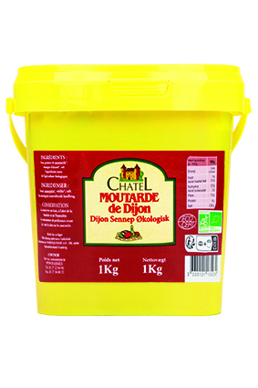 CHATEL Fransk Dijon-Sennep Stærk, Økologisk Varenummer: 9322 Nettoindhold: 1000 g EAN: 3335121135230 Antal pr. kolli: 6 Spand kollistk Næringsindhold pr. 100g Energi 529kJ / 127kcal Fedt 9,0g – Heraf mættet fedt 0,6g Kulhydrat 2,8g – Heraf sukkerarter 2,0g Protein 6,0g Salt 2,8g Ingredienser Vand, SENNEPsfrø*, eddike*, salt. *) fra kontrollerede økologisk landbrug. Som tilbehør til charcuterivarer og diverse varme retter. Specielt velegnet til saucer og dressing.