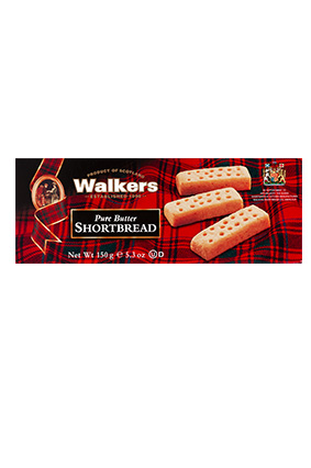 WALKERS Shortbread Fingers 32% Smør Varenummer: 8901 Nettoindhold: 150 g EAN: 039047001152 Antal pr. kolli: 12 Æske kollistk Næringsindhold pr. 100g Energi 2226kJ / 533kcal Fedt 30,3g – Heraf mættet fedt 18,9g Kulhydrat 58,4g – Heraf sukkerarter 16,2g Protein 5,6g Salt 0,7g Ingredienser HVEDEMEL(HVEDEMEL, calciumcarbonat, jern, niacin, thiamin), smør(MÆLK)(32%), sukker, salt. Yderligere allergene info: Kan indeholde: nødder. Småkage med 32% Smør, fremstillet efter traditionel Skotsk opskrift.