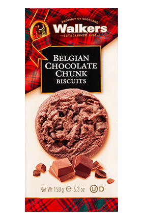 WALKERS Småkage m/Belgisk Chokoladestykker Varenummer: 8908 Nettoindhold: 150 g EAN: 039047050730 Antal pr. kolli: 12 Æske kollistk Næringsindhold pr. 100g Energi 2120kJ / 507kcal Fedt 25,5g – Heraf mættet fedt 15,9g Kulhydrat 62,8g – Heraf sukkerarter 36,6g Protein 5,5g Salt 0,7g Ingredienser HVEDEMEL(HVEDEMEL, E170, jern, niacin, thiamin), smør(MÆLK), chokoladestykker(15%)(sukker, kakosmasse, kokaosmør, emulgator: SOJALECHITIN, naturlig vaniljearoma), belgiske mælkechokoladestykker(10%)(sukker, SØDMÆLKSPULVER, kakossmør, kakaomasse, emulgator: SOJALECHITIN, naturlig vaniljearoma), fedtreduceret kakaopulver, SKUMMETMÆLKSPULVER, hævemidler: (E500, E450) Yderligere allergene info: Kan indeholde: nødder. Småkage fremstillet efter traditionel Skotsk opskrift.