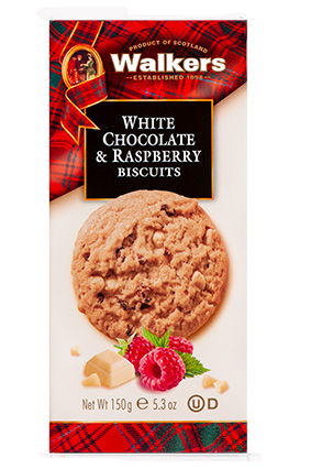 WALKERS Småkage m/Hvid Chocolade & Hindbær Varenummer: 8913 Nettoindhold: 150 g EAN: 039047050716 Antal pr. kolli: 12 Æske kollistk Næringsindhold pr. 100g Energi 2120kJ / 507kcal Fedt 25,6g – Heraf mættet fedt 9,0g Kulhydrat 62,3g – Heraf sukkerarter 31,2g Protein 5,6g Salt 0,6g Ingredienser HVEDEMEL(HVEDEMEL, E170, jern, niacin, thiamin), vegetabilsk olie(raps, palme), sukker, Belgisk hvid chokoladestykker(13%)(sukker, SØDMÆLKSPULVER, kakaosmør, SKUMMETMÆLKSPULVER, emulgator: SOJALECHITIN, naturlig vanilje aroma), HAVRE , gylden sirup(delvist invertsukker sirup), frysetørret hindbær(1,5%), hævemidler (E500, E450), SKUMMETMÆLKSPULVER, naturlig aroma Yderligere allergene info: Kan indeholde: nødder. Småkage fremstillet efter traditionel Skotsk opskrift.