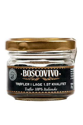 BOSCOVIVO Trøffel Salsa Varenummer: 3701 Nettoindhold: 90 g EAN: 8001894081009 Antal pr. kolli: 6 Glas kollistk Næringsindhold pr. 100g Energi 697kJ / 166kcal Fedt 17,0g – Heraf mættet fedt 2,0g Kulhydrat 1,0g – Heraf sukkerarter 0,0g Protein 5,0g Salt 1,0g Ingredienser Champignon(Agaricus bisporus), solsikkeolie, sort oliven, sommertrøffel (Tuber Aestium Vitt 5%) rehydrerede tørrede porcini svampe(boletus edlis), salt, vineddike, hvidløg, smagstoffer, krydderier. I svampe saucer og stuvninger, i supper, i gryde og vildt retter samt ristet i smør til garniture.