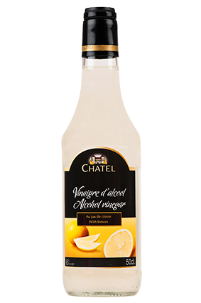 CHATEL Citron-vineddike 6% syre Varenummer: 3349 Nettoindhold: 500 ml EAN: 3335122723467 Antal pr. kolli: 6 Flaske kollistk Næringsindhold pr. 100g Energi 319kJ / 75kcal Fedt 0,0g – Heraf mættet fedt 0,0g Kulhydrat 14,2g – Heraf sukkerarter 0,0g Protein 0,1g Salt 0,0g Ingredienser Vineddike, citronsaft 10%, aroma. Konserveringsmiddel: E224(SULFIT) Olie/eddike dressinger, marinader, retter med fisk og fjerkræ, mayonnaise, desserter, som smagsgiver til saucer.