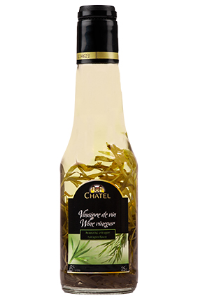 CHATEL Estragoneddike, 6% syre Varenummer: 3382 Nettoindhold: 250 ml EAN: 3335122723443 Antal pr. kolli: 6 Flaske kollistk Næringsindhold pr. 100g Energi 9kJ / 2kcal Fedt 0,1g – Heraf mættet fedt 0,0g Kulhydrat 0,4g – Heraf sukkerarter 0,0g Protein 0,1g Salt 0,1g Ingredienser Hvidvinseddike, estragon, naturlig aroma. Konserveringsmiddel: E224(SULFIT). Ideel til olie/eddike dressinger, mayonnaise, som smagssætter i saucer og til klassikeren bearnaise-sauce. Også perfekt til marinering.