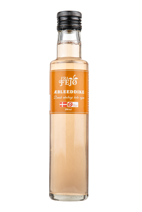 FRA FEJØ Æbleeddike Økologisk Varenummer: 3366 Nettoindhold: 250 ml EAN: 5700002170910 Antal pr. kolli: 6 Flaske kollistk Næringsindhold pr. 100g Energi 18kJ / 4kcal Fedt 0,1g – Heraf mættet fedt 0,1g Kulhydrat 0,1g – Heraf sukkerarter 0,0g Protein 0,1g Salt 0,1g Ingredienser Dansk Økologisk eddike(95%), saften fra Danske Økologiske æbler. Ideel til olie/eddike dressinger, som smagsforstærker i saucer. Også perfekt til marinering.