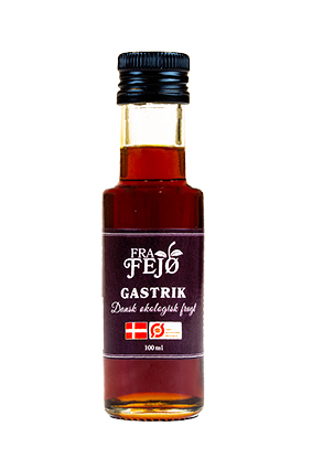 FRA FEJØ Gastrik, Økologisk Varenummer: 3395 Nettoindhold: 100 ml EAN: 5745000142354 Antal pr. kolli: 6 Flaske kollistk Næringsindhold pr. 100g Energi 887kJ / 212kcal Fedt 0,0g – Heraf mættet fedt 0,0g Kulhydrat 49,3g – Heraf sukkerarter 48,1g Protein 0,4g Salt 0,0g Ingredienser Dansk Økologisk frugteddike(syreindhold 5%), økologisk sukker. Tilsmagning af dressinger, saucer, gryderetter eller supper. Glasering af kød, fisk eller grøntsager.